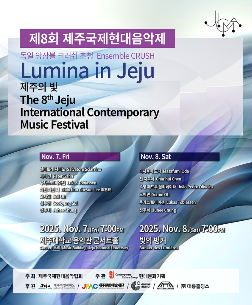Das Ensemble CRUSH ist eingeladen, als einer der Hauptakteure am Jeju International Contemporary Music Festival in Südkorea teilzunehmen. Für die Konzerte in Jeju wird CRUSH Werke aufführen, die den Dialog zwischen aktueller deutscher und koreanischer Musik in den Mittelpunkt stellen.